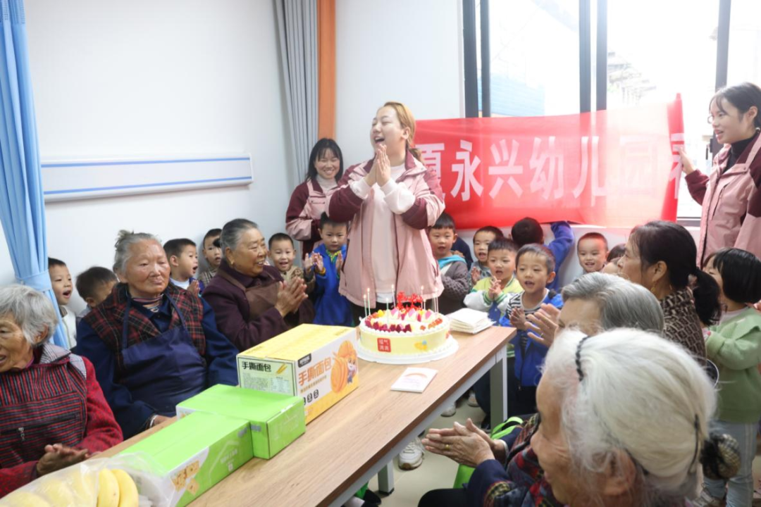 “爷爷,婆婆,祝你们重阳节快乐,寿北南山,身体健康。”综合为老服务中心二楼活动室内,孩子们稚嫩的祝语声与老人们开心的笑声此起彼伏。华夏永兴幼儿园的小朋友和老师们一起,带着蛋糕、牛奶、水果等礼物,来到综合为老服务中心,为爷爷奶奶们献上最温暖的祝福和问候,也为自己种下了一粒尊老、爱老、敬老、助老的“种子”。