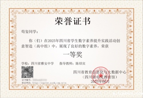 省一等奖+2!雅安中学学子在2025年四川省学生数字素养提升实践活动中喜获佳绩