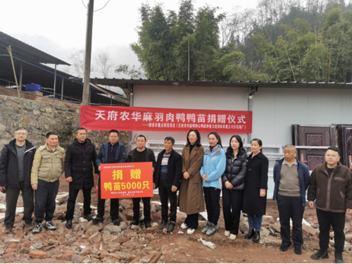 3月12日,荥经县宝峰乡杏家村肉鸭养殖基地项目建成投产。当天由雅安市科技局与四川农业大学、市农业农村局合作重点研发项目《天府农华麻鸭种公鸭配种能力选择体系建立与示范推广》课题组举行了鸭苗捐赠活动,免费向肉鸭养殖基地赠送5000羽鸭苗,惠及杏家村205户共800余人,预计项目投产后,村集体经济年增收可达20万元。