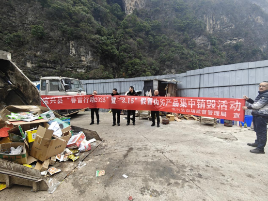 在2025年“3·15”国际消费者权益日来临之际,为深入开展“春雷行动2025”行动,严厉打击制售假冒伪劣产品等违法行为,营造辖区安全放心的消费环境,维护消费者的合法权益,3月13日,宝兴县市场监管局开展“春雷行动2025”暨“3·15”假冒伪劣产品集中销毁活动。