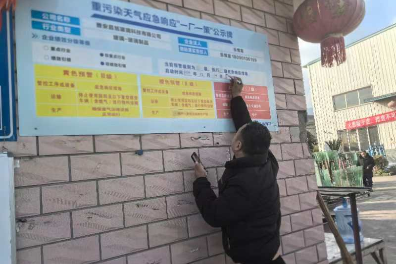 雨城区督导检查重污染天气预警期间企业“一厂一策”减排措施落实情况。
