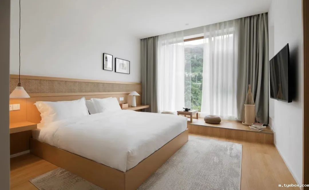 整体呈日式简约的风格,在这绿水青水间,像是住进了森林里,更让人心动了。