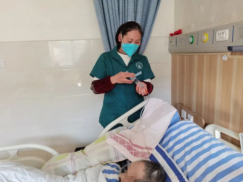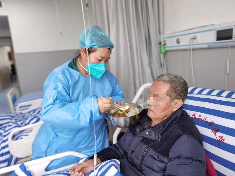 工作人员忙着给老人们打饭的时候,护理员罗全芬端着一碗特殊的食物往病房走去。