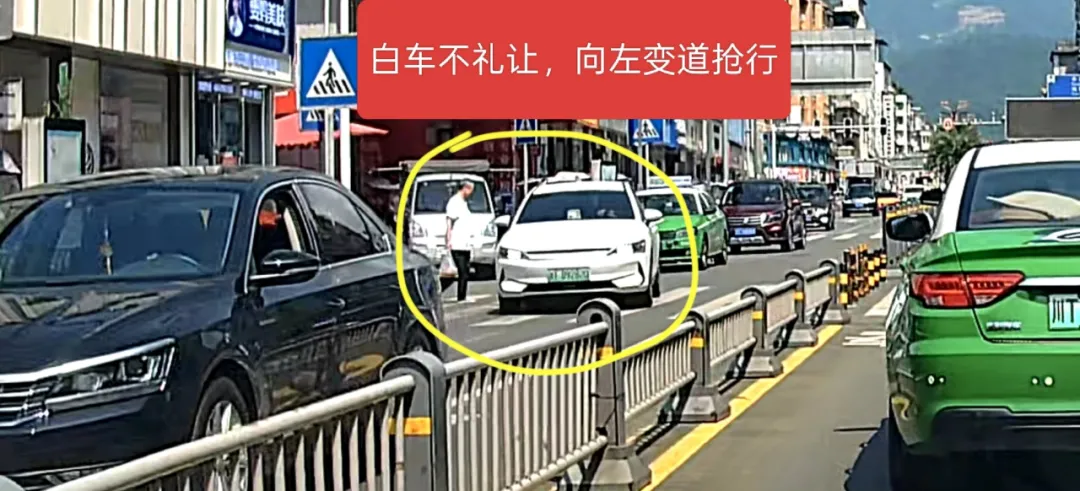 事件描述:雅安市雨城区文化路与中大街交叉口,川TD9***0斑马线不礼让行人,向左变道抢行,从行人身前绕过。行人与该车在同一机动车道内。
