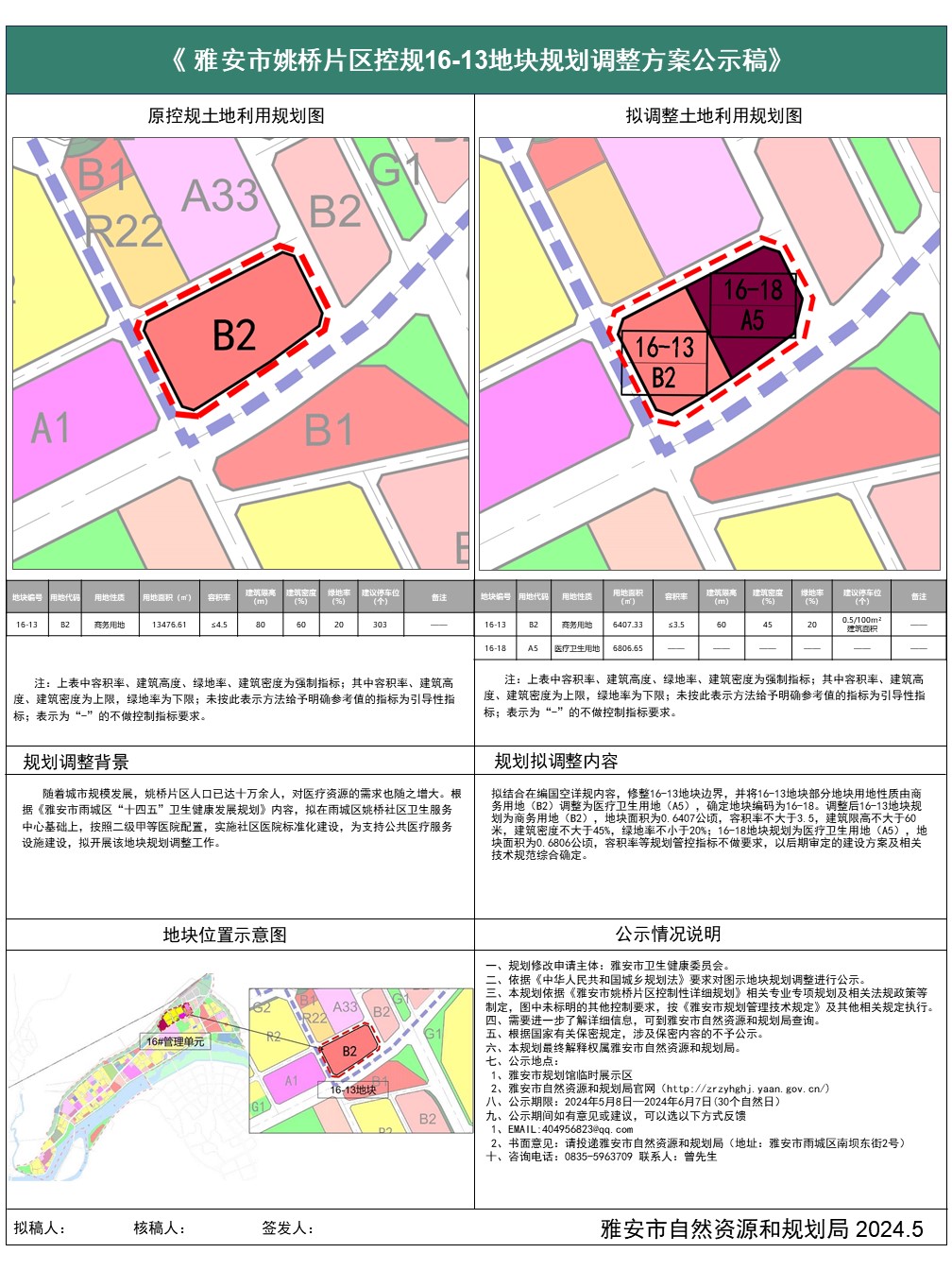 雅安市姚桥片区控规16-13地块规划调整方案公示稿